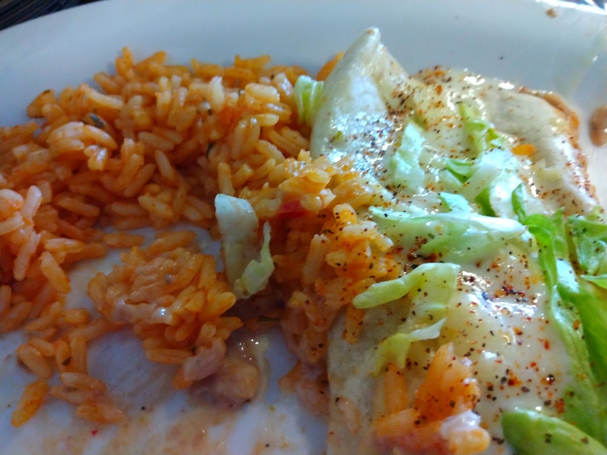 Got the flaming volcano dish. It had shrimp, steak, and chicken with onions and peppers. The steak was over done, but everything was delicious and I had plenty. It also came with a salad (guacamole, sour cream, tomato, and lettuce), beans and rice. Wife had plenty to eat and really enjoyed the meal. The salsa had a tomato taste more than other salsas we have had, but delicious and even a little spicy with just a small kick. Service was great. Better than we expected in many ways.